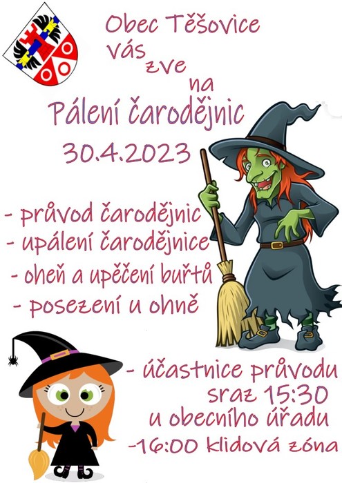 Zveme všechny čarodějnice k slavnostnímu obřadu v neděli 30.4.2023 do Těšovic! A ostatní na hezky strávené odpoledne!