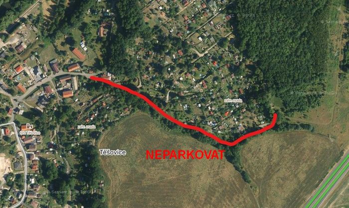 Prosím neparkujte auta ve vyznačené oblasti : Od bývalé školy ke stanovišti u nádrží!