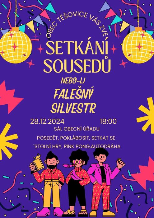 Obec Těšovice Vás zve na předsilvestrovské posezení se sousedy, které se koná v sobotu 28.12.2024 od 18:00!